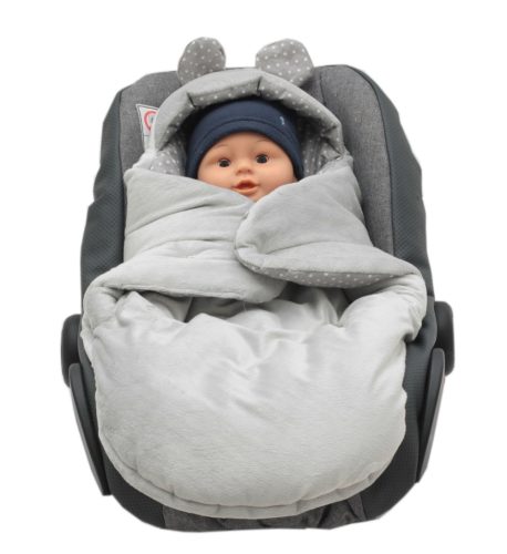 Śpiworek przystosowany jest do fotelika, gdyż posiada otwory na 3 oraz 5 punktowe pasy bezpieczeństwa.