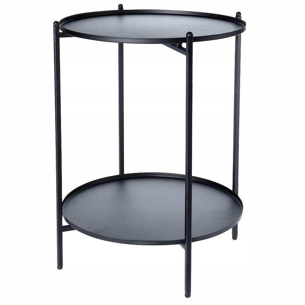 Wykonany z metalu, w kolorze czarnym, na dwa poziomy stolik pomocniczy o wymirach: 50x35 cm