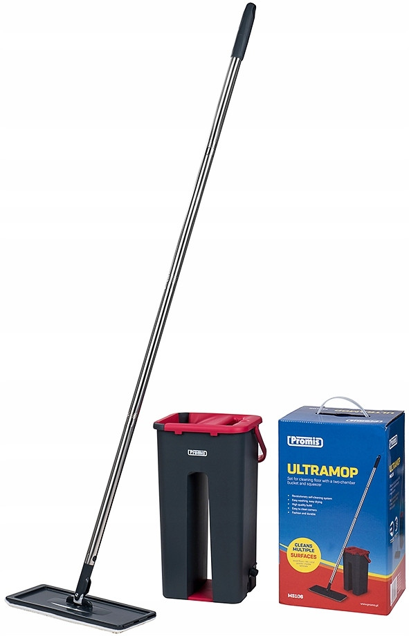 Zapomnij o zabrudzeniu rąk lub konieczności pochylania się, aby wypłukać i ręcznie wycisnąć mopa. Wiadro składa się z dwóch komór. W pierwszej komorze jest woda i zbierak, który oczyszcza nakładkę mopa z brudu. Druga komora usuwa nadmiar wody z nakładki (mikrofibry). Dzięki temu unikniesz zachlapania podłogi zbyt dużą ilością wody. Korki spustowe u dołu wiadra mopa pozwolą na łatwe jego opróżnianie.