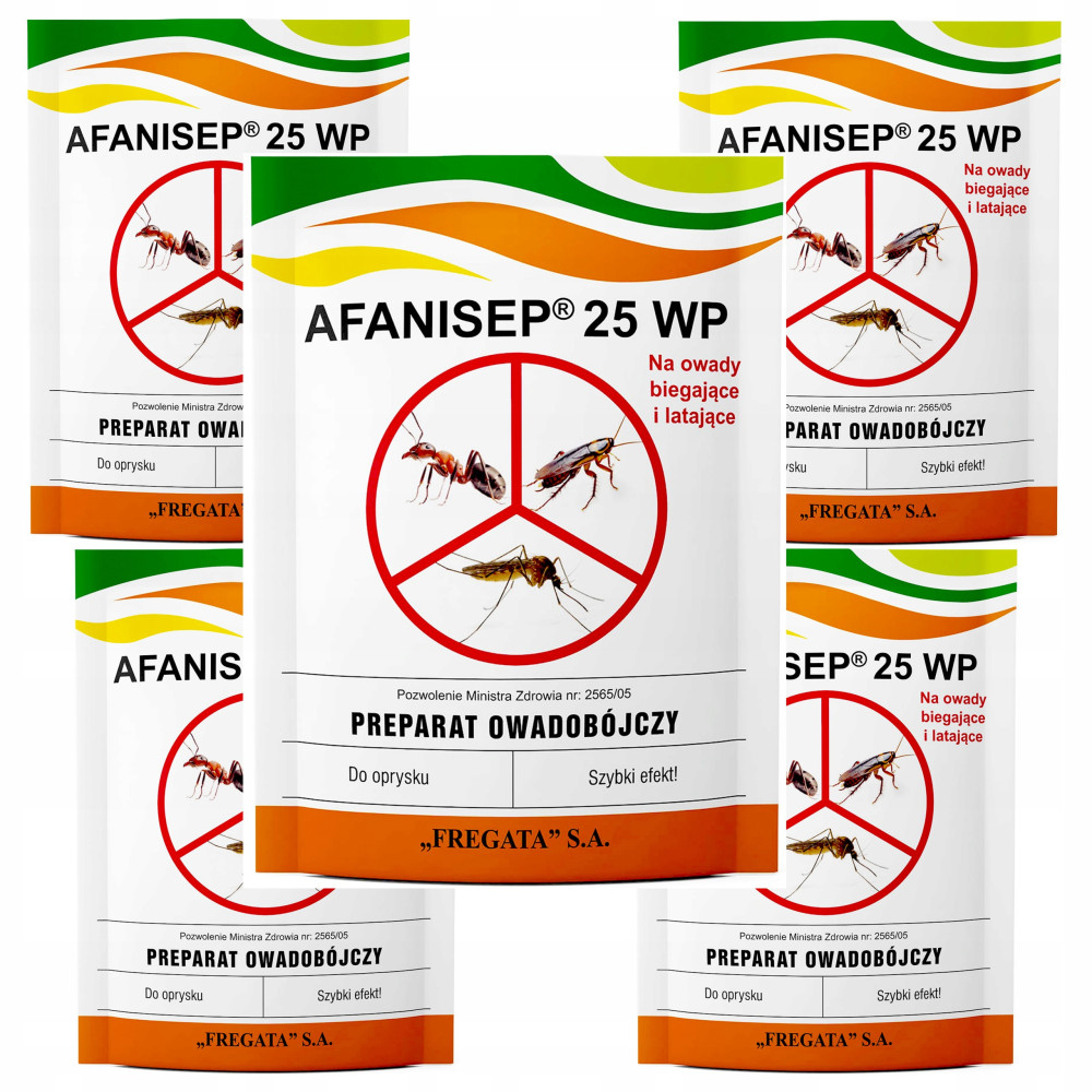 AFANISEP 25WP to preparat owadobójczy w postaci proszku do rozcieńczenia w wodzie. Skutecznie zwalcza muchy, komary, kleszcze, mrówki, pchły, karaluchy, prusaki, rybiki cukrowe i inne owady.