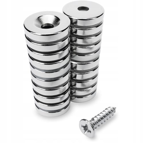 Bardzo mocne magnesy pierścieniowe z otworem pod wkręt do stałego montażu np. w drewnie. Idealne do warsztatu oraz zastosowań domowych jako element montażowy, do mebli, przytrzymywania lub podwieszenia innych obiektów - wyposażenia, narzędzi, akcesoriów.