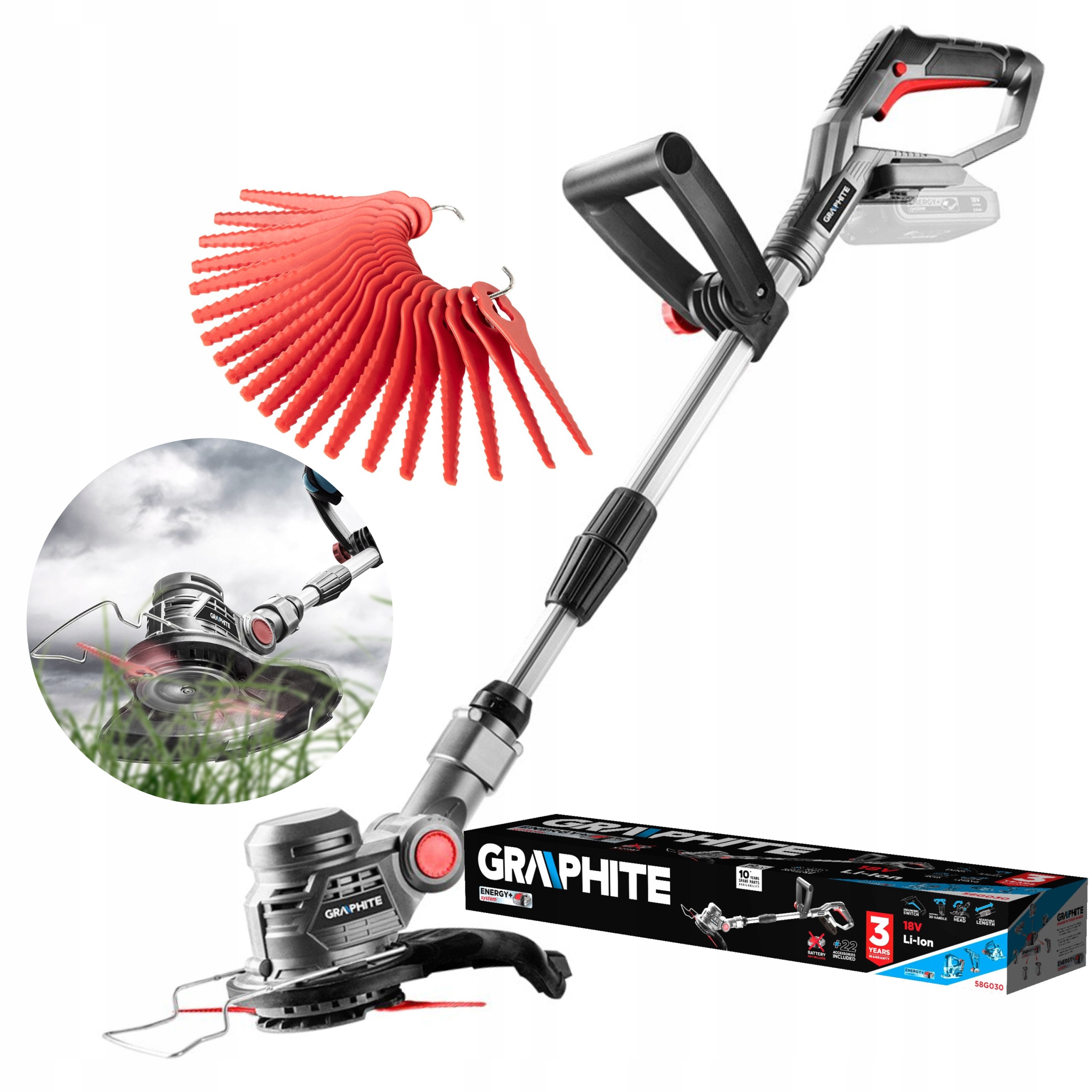Podkaszarka elektryczna GRAPHITE, współpracująca z akumulatorami 18V Li-Ion GRAPHITE Energy+ to poręczne i funkcjonalne urządzenie do koszenia miejsc, do których zwykła kosiarka nie jest wstanie dotrzeć, takich jak narożniki i krawędzie trawnika, powierzchnie wzdłuż murów lub pod ławkami ogrodowymi. Umożliwia szybkie i łatwe podkaszanie na niewielkich przestrzeniach - szerokość koszenia 254 mm. Wygodny uchwyt, lekka konstrukcja, a przede wszystkim zasilanie akumulatorowe zapewniają komfortową pracę w ogrodzie.