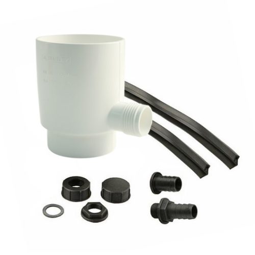 Zbieracz wody przechwytuje deszczówkę z rury spustowej do momentu, gdy woda w zbiorniku osiągnie poziom na jakim zainstalowany jest zbieracz. Nadmiar płynie dalej rurą spustową. W komplecie uszczelki montażowe (poza zbieraczem 90mm) oraz króćce służące do podłączenia zbieracza ze zbiornikiem.