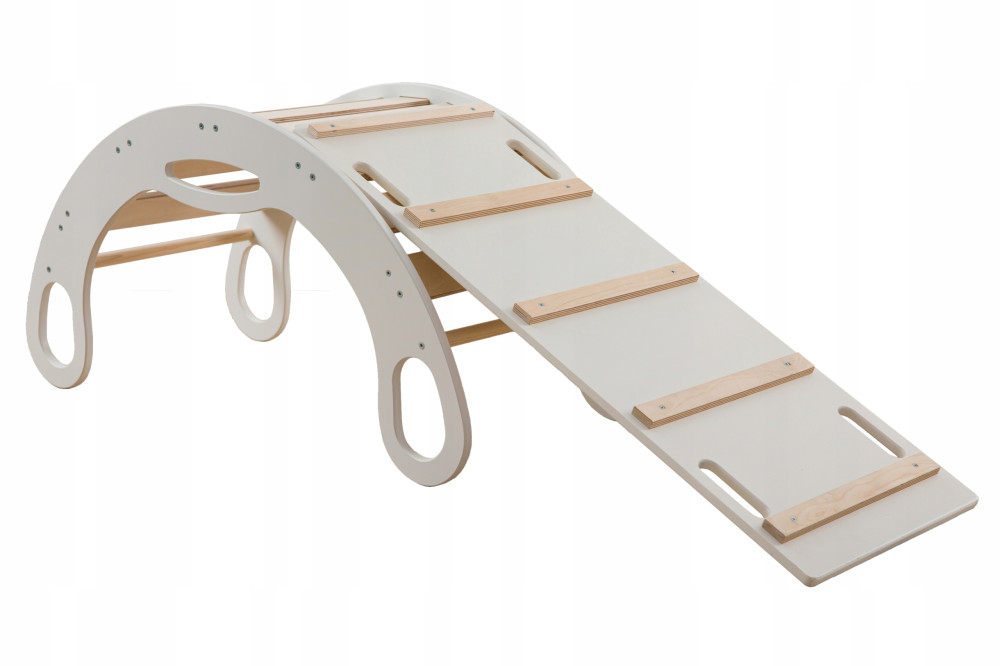Zjeżdżalnia jest wielofunkcyjna może być ścianką wspinaczkową, kołyską oraz zjeżdżalniom.