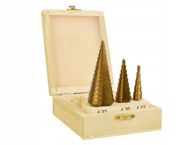 Komplet wierteł stopniowych ze stali HSS powlekanej warstwą tytanu. Zestaw pozwala na wiercenie idealnie okrągłych otworów w stali, mosiądzu, miedzi, aluminium, drewnie i tworzywie sztucznym.