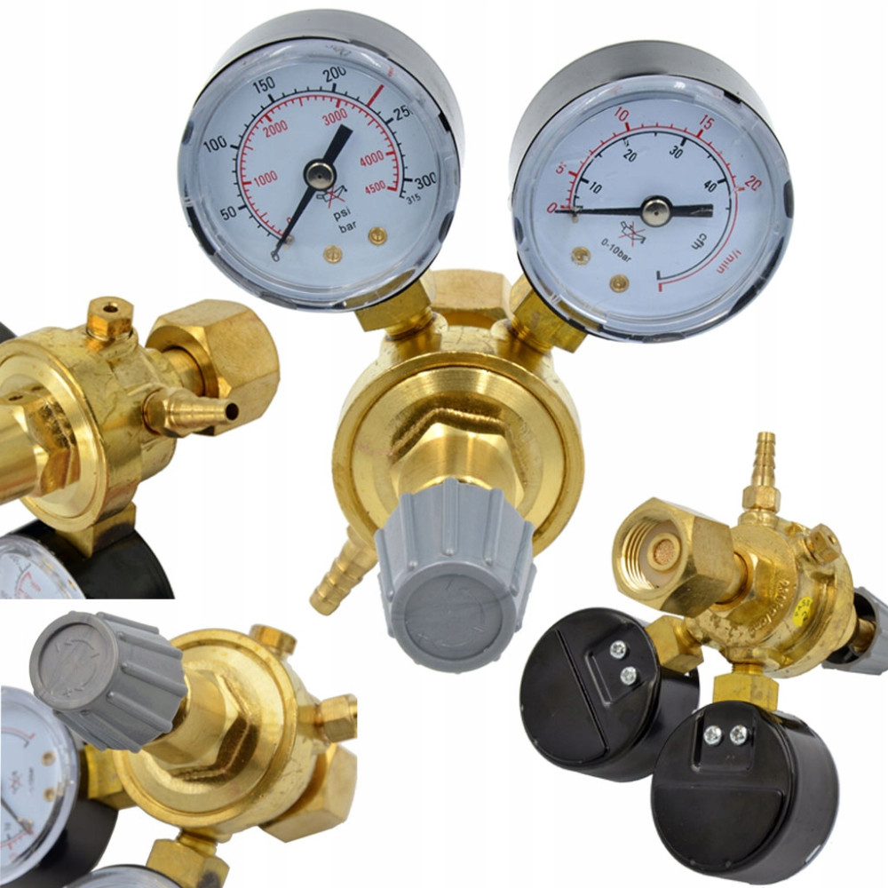 Fabrycznie nowy. Reduktor ciśnienia wyposażony w dwa manometry. Pierwszy wskazuje ciśnienie w butli, a drugi ciśnienie robocze. Gwint pasuje do wszystkich komercyjnie produkowanych butli z zaworem zewnętrznym. Wyjście: gwint wewnętrzny 1/8 cala (króciec 6mm w zestawie). Możliwość podpięcia w taki sposób by nie podnosił dodatkowo wysokości zmontowanego zestawu (butla + reduktor). W wypadku chęci podłączenia wężyka PU proponujemy zakupienie szybkozłączki 1/8 cala, która umożliwi bezproblemowe podłączenie przewodu ciśnieniowego przy zachowaniu 100% szczelności.