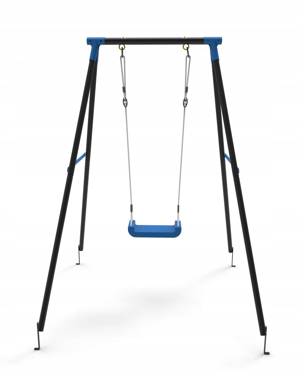 Metalowy huśtawka do ogrodu: Pojedyncza wygodna huśtawka. Huśtawka której nie może zabraknąć na każdym placu zabaw dla dzieci. Wszystkie elementy wykonane zostały z bardzo trwałych, bezpiecznych materiałów.
