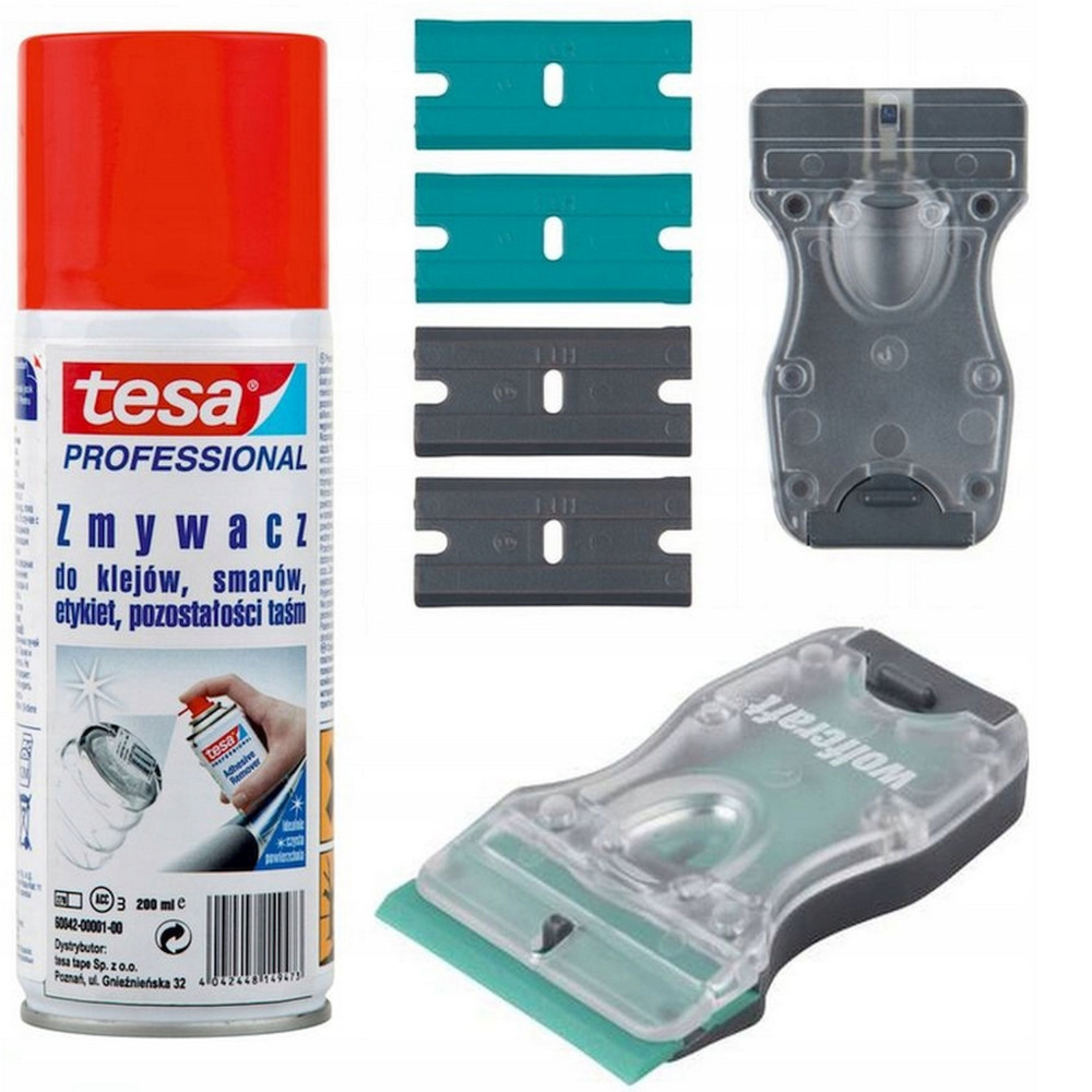 TESA Zmywacz do kleju etykiet naklejek taśm + skrobak Wolfcraft