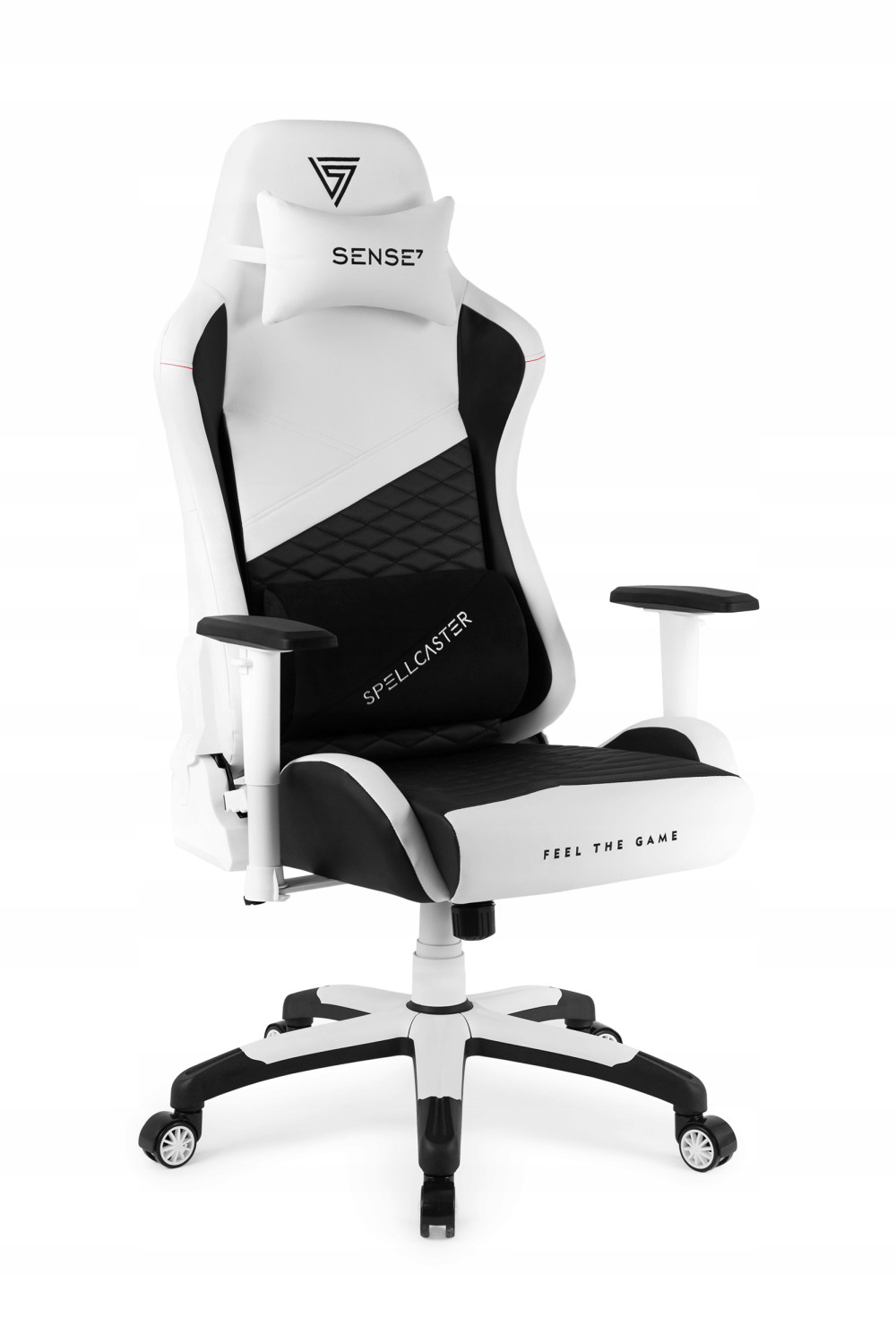 Model Spellcaster wyposażony jest w dwie wygodne, regulowane poduszki. Lędźwiowa - wykonana z oddychającej pianki HR, oraz zagłówek wypełniony mikrowłóknami. Obie pomogą Ci osiągnąć wygodną i ergonomiczną pozycję dopasowaną do Twojego kręgosłupa.