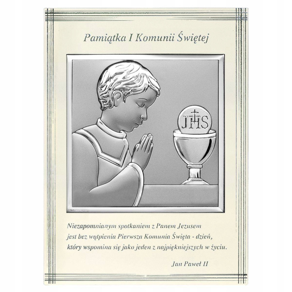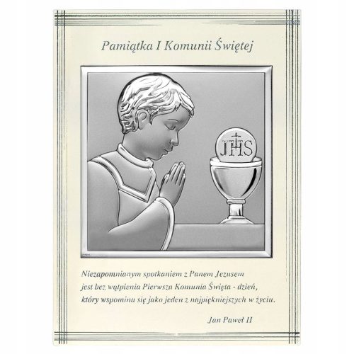 Mamy dla Was śliczny srebrny obrazek na komunię świętą dla chłopca.