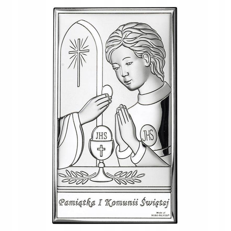 Prezentujemy śliczny, posrebrzany prezent na komunię dla chłopca. Srebrny obrazek komunijnyto dzieło włoskiej firmy Valenti. Wykonany jest z niezwykłą precyzją i dbałością o szczegóły, co zapewnia wyjątkowość naszego produktu. Obrazek stanowi idealny upominek tej wyjątkowej okazji i może być wręczony od chrzestnej, chrzestnego, od babci, od cioci lub od rodziców.