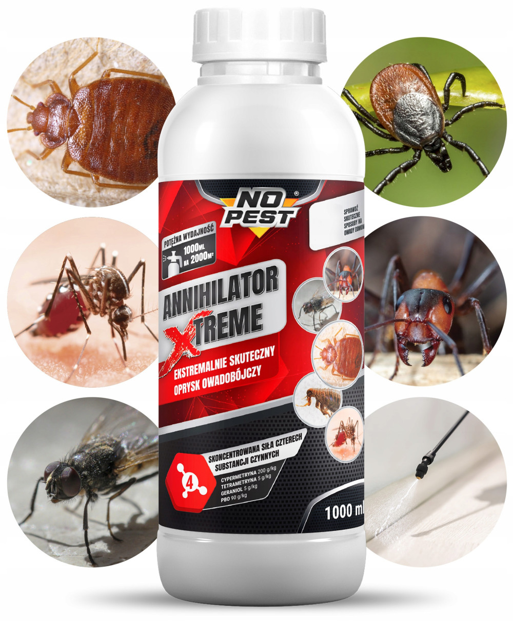 Środek na owady i insekty Annhilatior Xtreme działa kontaktowo oraz drogą pokarmową. Zalecamy jego stosowanie w formie oprysku, łącząc płyn z utrwalaczem oprysku oraz opryskiwaczem. Za pomocą takiego zestawu na pewno skutecznie uda Ci się pozbyć owadów. Zagwarantujesz spokój i bezpieczeństwo wszędzie, gdzie tylko będziesz chciał!