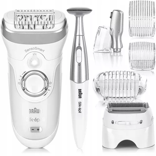 BRAUN Silk-epil 9 Limited Edition Pack (Wet&Dry) SensoSmart z głowicą golącą oraz trymerem do okolic bikini Braun + Bonusowe nasadki