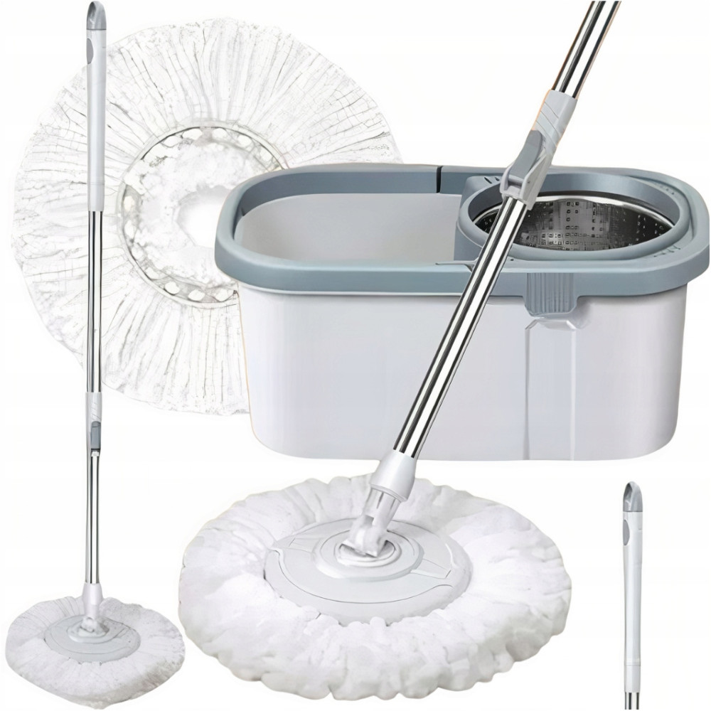 Posiada wyjątkową praktyczność, ergonomię i dynamiczność. Obracający się metalowy wirnik z dodatkowej komory umożliwia szybkie odessanie i wysuszenie mopa, a pojemne wiadro jest łatwe do przenoszenia dzięki wygodnemu uchwytowi. Dzięki zatyczce na dole wiadra, woda może być łatwo wylana po zakończeniu mycia. Mop jest idealny do czyszczenia paneli, parkietu, płytek i wykładzin PCV.