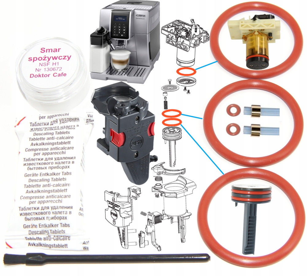 Zestaw przeznaczony jest do bloku zaparzającego, głowica parzenia bojlera oraz na przewód wodny, ciśnieniowy ekspresu do kawy marki DeLonghi ECAM ETAM wymienionych w niżej podanej specyfikacji.