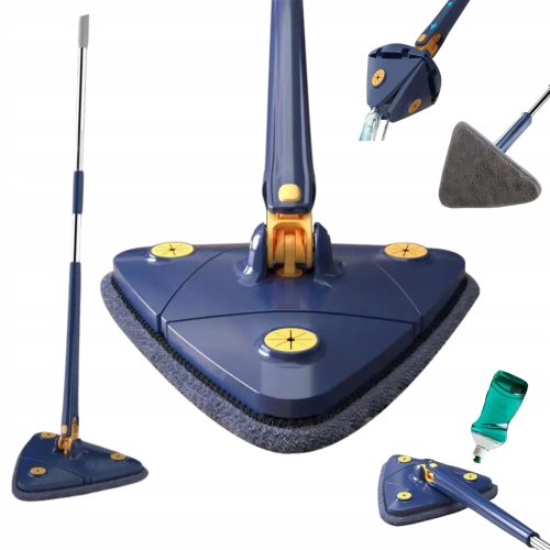 Mop obrotowy o trójkątnym kształcie, wyposażony w system wyciskający. Jego design umożliwia dotarcie do narożników i trudno dostępnych miejsc. Wkład z mikrofibry zapewniaja dokładne czyszczenie, a wyciskacz ręczny pozwala na łatwe odwirowanie wody bez konieczności brudzenia rąk. Mop ma modułową konstrukcję, co ułatwia przechowywanie i wymianę części.