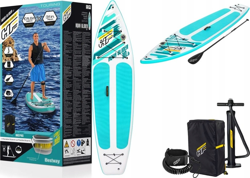 Deska jest również wyposażona w smycz, dzięki której nigdy nie zboczysz z deski, oraz wygodną torbę podróżną, która sprawia, że transport wypompowanej deski jest bardzo przyjemny.