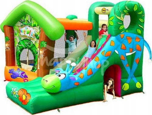 Pełen atrakcji nadmuchiwany zamek doskonale nadaje się do zabawy na świeżym powietrzu.