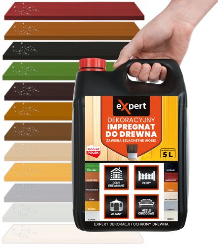 Impregnat do ochronny drewna to produkt na bazie żywicy akrylowej przeznaczony do ochrony i dekoracji drewna. Produkt zawiera najwyższej jakości naturalne woski, które odpychają wodę, dzięki czemu zwiększają trwałość i wytrzymałość drewna. Impregnat bardzo łatwo rozprowadza się po malowanej powierzchni i nie kapie, NIE CHLAPIE. Zapewnia pełną ochronę drewna. Impregnat do ochrony i dekoracji każdego rodzaju drewna oraz materiałów drewnopodobnych. Do stosowania wewnątrz i na zewnątrz pomieszczeń.