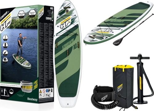 Deska jest również wyposażona w smycz, dzięki której nigdy nie zboczysz z deski, oraz wygodną torbę podróżną, która sprawia, że transport wypompowanej deski jest bardzo przyjemny.