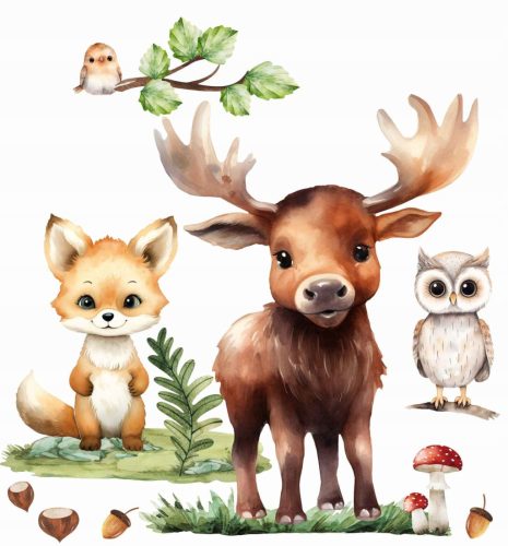 Zamień pokój dziecka w cudowny leśny zakątek przy użyciu łatwych w aplikacji naklejek ściennych z motywem Zwierzątek leśnych.