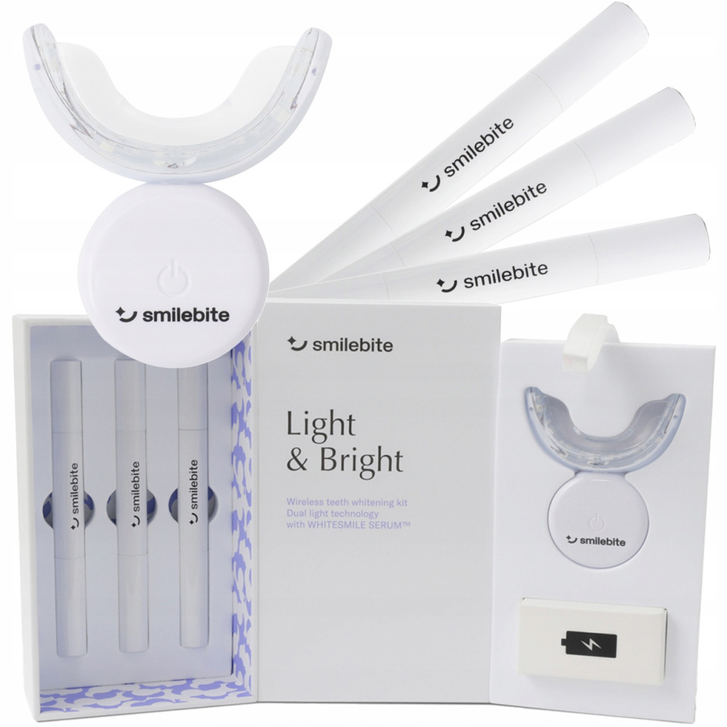 Urządzenie Light & Bright jest wyposażone w timer, który pomaga w monitorowaniu czasu wybielania, co ułatwia przestrzeganie zalecanej kuracji. Nie zawiera szkodliwego nadtlenku wodoru, co sprawia, że jest bezpieczne dla szkliwa zębów. Smilebite zapewnia również komfort użytkowania dzięki ergonomicznej nakładce pasującej do każdego kształtu jamy ustnej oraz możliwości czyszczenia w wodzie, co zwiększa higienę użytkowania.