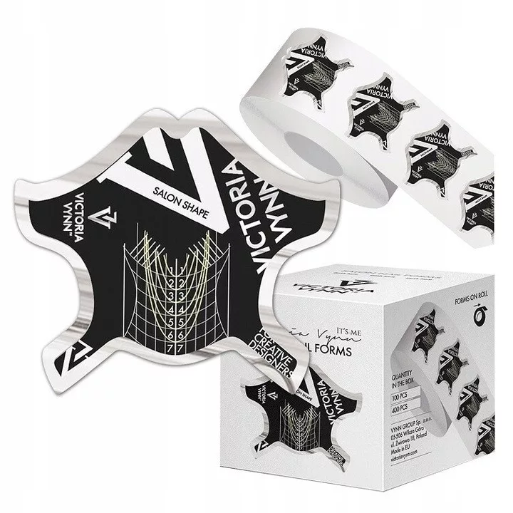 Formy do przedłużania paznokci o doskonałym salonowym kształcie, wykonane z metalizowanego, laminowanego papieru. Idealne do pracy z bazą hybrydową Mega Base, żelem i akrylożelem.