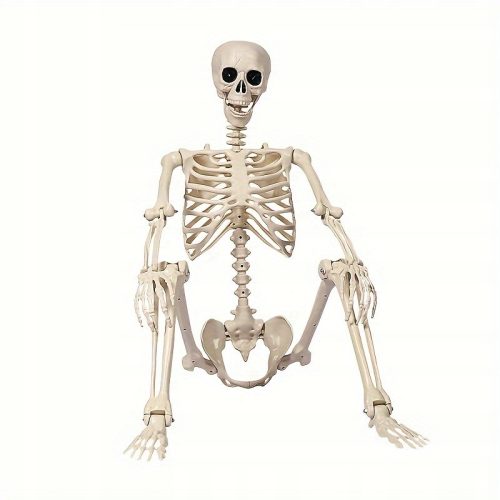 Ludzki szkielet w rozmiarze 5,4 stopy – realistyczny, plastikowy szkielet człowieka z ruchomymi stawami do nawiedzonego domu, dekoracja na imprezę w stylu straszliwej sceny, wolnostojąca dekoracja świąteczna na zewnątrz
