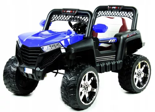 Pojazd jest zdalnie sterowany pilotem 2.4 G. Pilot = kontrola opiekuna - w każdej chwili opiekun może zareagować pilotem na jazdę swojego Dziecka. Dzięki takiemu rozwiązaniu, kiedy Rodzice zauważą, że dziecko jedzie w złym kierunku mogą natychmiast zareagować pilotem tj. zmienić kierunek jazdy lub natychmiast zatrzymać pojazd - funkcja STOP w pilocie. Pilot funkcje: jazda przód/tył, skręt prawo/lewo, regulacja prędkości, funkcja STOP (natychmiastowe zatrzymanie).