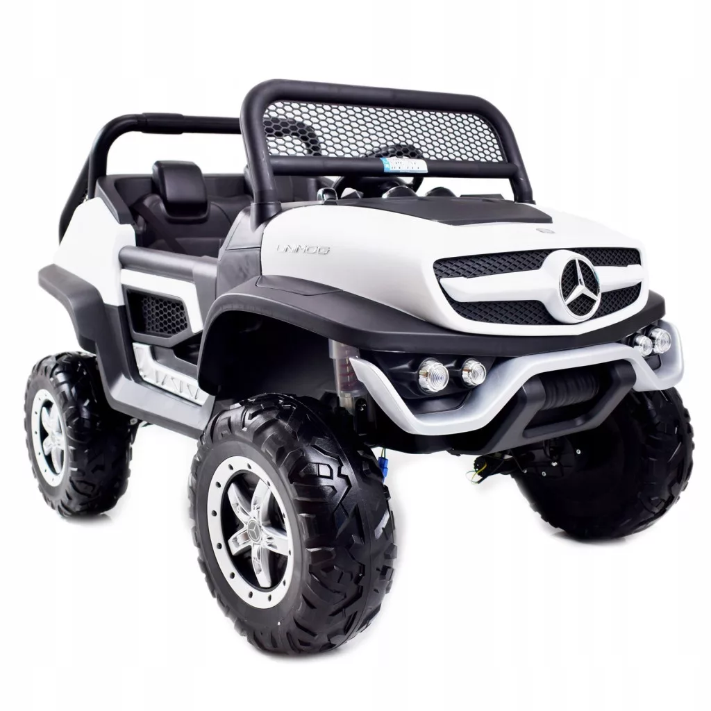 MERCEDES UNIMOG jeden z najlepiej wykonanych pojazdów na akumulator - zasilane na 12 V z napędem na 4 koła - zachwyci nie jednego przyszłego kierowcę. Dzięki zastosowanym najmocniejszym silnikom 45 W, auto jeździ po nierównym terenie bez żadnych problemów, a dodatkowo silniki te są bardzo dobrej jakości. Najciekawszą funkcją pojazdu jest NOWOCZESNY PANEL , SYSTEM WOLNEGO STARTU, AMORTYZATORY oraz SYSTEM HAMOWANIA Z PILOTA .