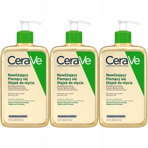 Olejek Nawilżający CeraVe Hydrating Foaming Oil Cleanser Pieniący Się Do Mycia Twarzy i Ciała 3 x 473ml.