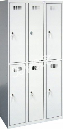 Szafka z dwoma schowkami w pionie, w 3 kolumnach. Każda komora wyposażona jest w samoprzylepny plastikowy wizytownik, drążek oraz dwa wieszaki na ubranie. Schowki szafy zamykane zamkami cylindrycznymi z ryglowaniem w jednym punkcie. Drzwi szafy z zastrzeżoną znakiem przemysłowym perforacją o nowoczesnym designie. Wymiar 1800x900x500 (wys x szer x gł). Szafa dostarczana w całości. Zgrzewanie (większość szaf na Allegro jest do samodzielnego montażu) zapewnia wysoką jakość wykonania Na tej aukcji licytujesz szafę w kolorze popiel ral 7035 (jak na zdjęciu obok).