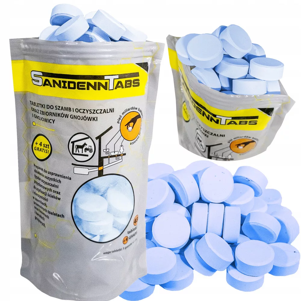 ⭐ Oczyszczanie ścieków: W przypadku zastosowania do przydomowych oczyszczalni ścieków i szamb, zbiorników bezodpływowych preparat stosuje się w ilości 5 gramów ( jedna tabletka ) na każde 3m3 pojemności zbiornika co 7 dni