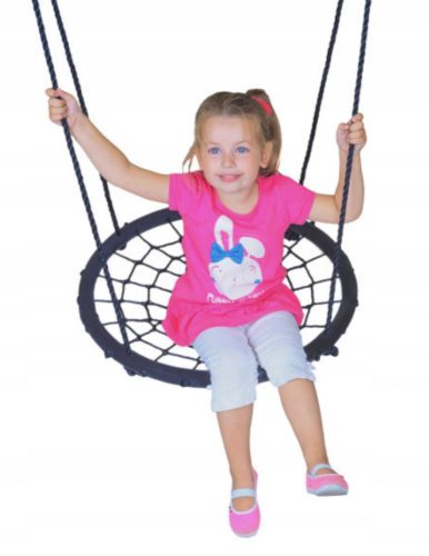 Huśtawki typu bocianie gniazdo biją rekordy popularności wśród artykułów zabawowych dla dzieci. Idealnie nadaje się do każdego ogrodu, na taras lub nawet balkon. Huśtawkę bez przeszkód można używać również w zamkniętych pomieszczeniach. Posiada dwa punkty zawieszenia i można ją podwiesić pod sufit lub standardowo na drewnianej belce zamiast tradycyjnej huśtawki a także na solidnym konarze rosnącego w ogrodzie drzewa. Podstawą konstrukcji jest stalowa rura zabezpieczona miękką otuliną z pianki, a samo siedzisko wykonane jest z grubego sznura o splocie pajęczyny na kształt wygodnego gniazda. Liny wykonane są z polipropylenu o grubości 12 mm i łatwo można regulować wysokości zawieszenia siedziska. Kółeczka i ósemki zostały wykonane z galwanizowanej stali. Jest odporne na zmienne warunki atmosferyczne, promieniowanie UV oraz intensywne użytkowanie a wysoka wytrzymałość materiału zapewnia pełne bezpieczeństwo korzystania z huśtawki. Wytrzymuje ciężar wielokrotnie większy niż ciężar dziecka, oraz jest bardzo łatwe w montażu a sam sposób zamontowania jest trwały i bezpieczny.