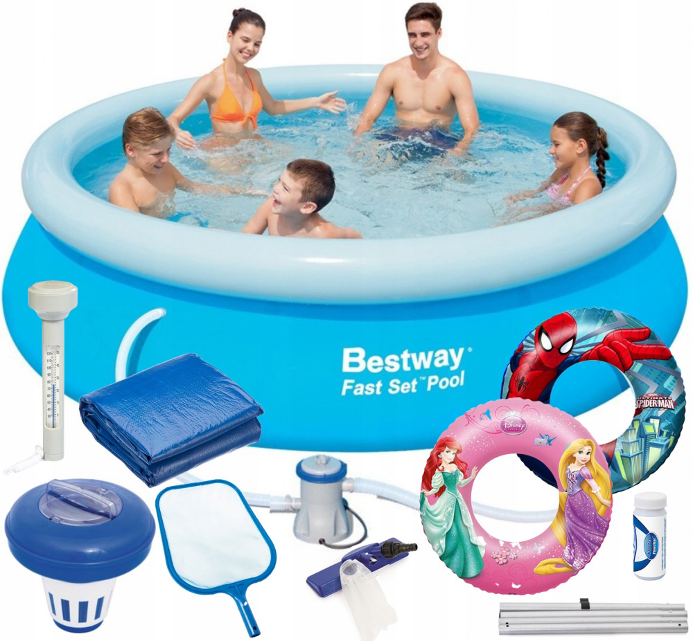 Basen ogrodowy rozporowy Bestway Fast Set okrągły o rozmiarach 305 średnicy, wysokości 76 cm i pojemności 3,800l.